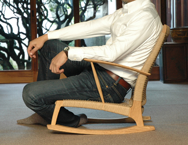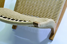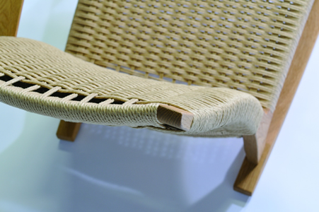 人の背中のようなしなやかなカーブの木のフレームに、ペーパーコードを巻くことで、 人の体を支える為の理想的な3次元曲面を作り出します。